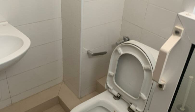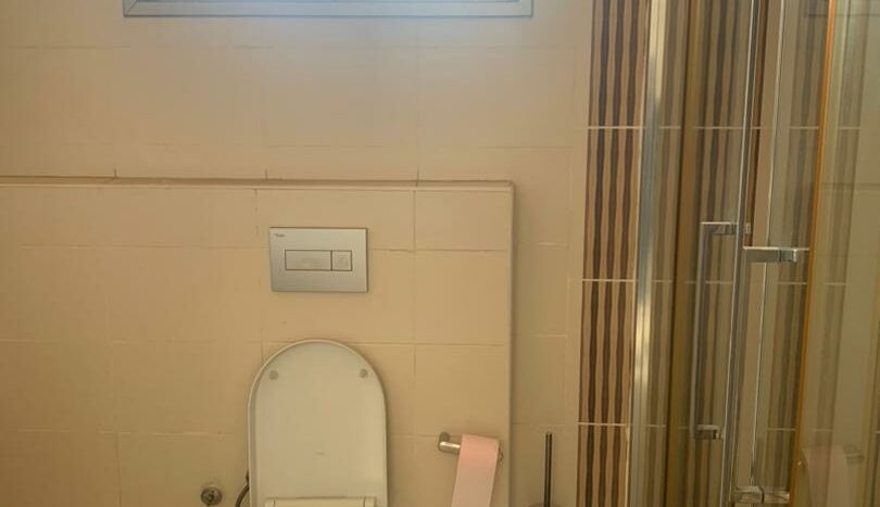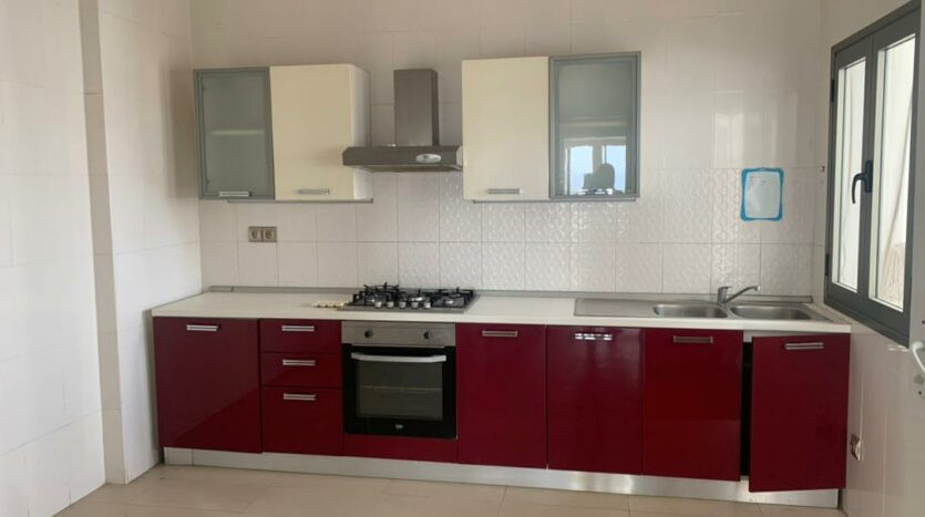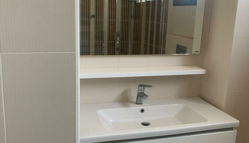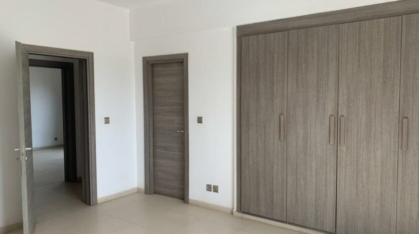 trois chambres avec chacune sa salle d’eau et des placards, balcon au niveau du salon et dans la chambre parentale. Toutes les pièces sont également climatisées et l’immeuble dispose d’un ascenseur service de gardiennage 24h/24 ,groupe électrogène et parking au sous sol.