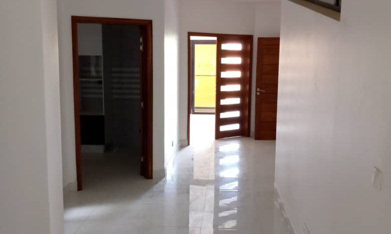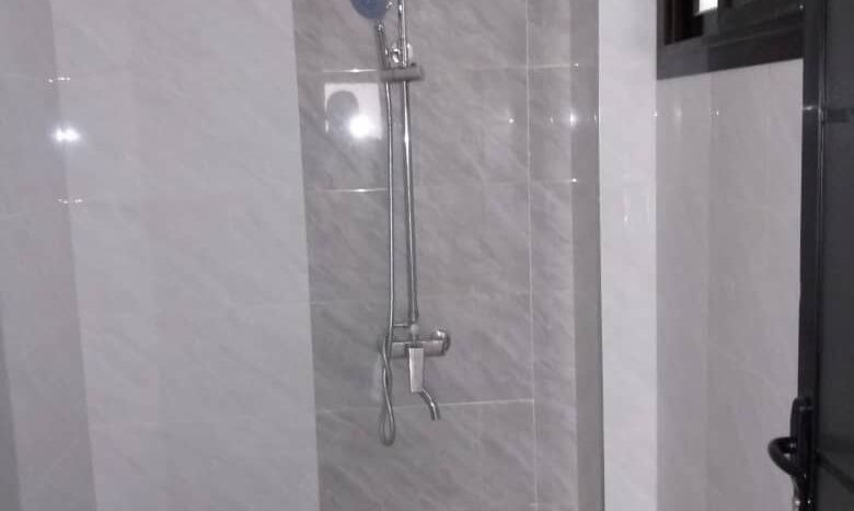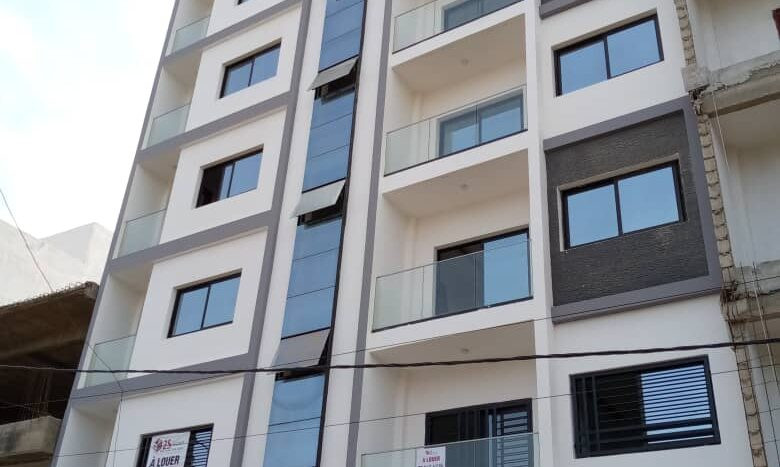 Il est composé de trois chambres dont deux avec salle d’eau chacune , une toilette extérieure, une cuisine équipée de (placard et four) ,balcon et espace familiale.