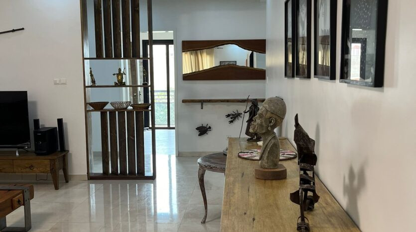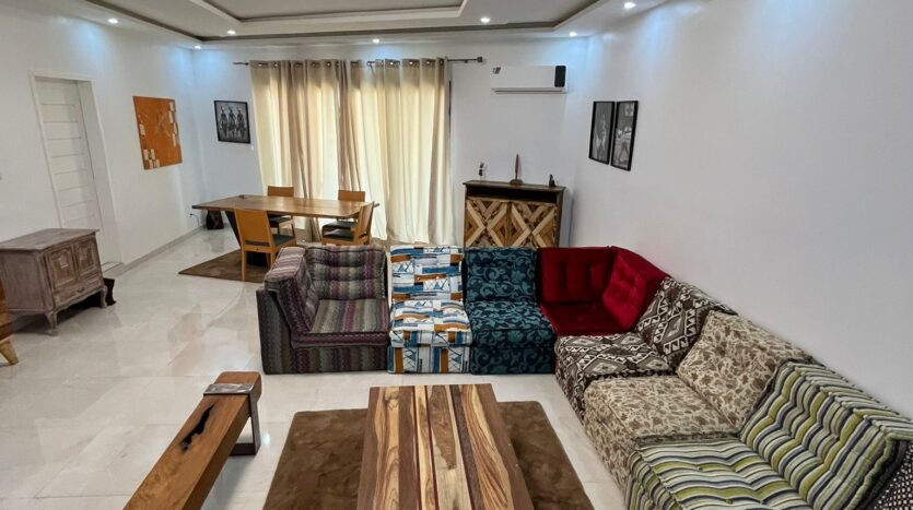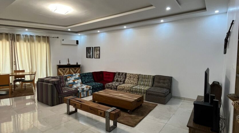 Nous vous proposons en location un appartement entièrement meublé dans un immeuble neuf. Il est composé de trois chambres avec deux salles de bain, une toilette visiteur, un grand salon avec balcon, une cuisine équipée.