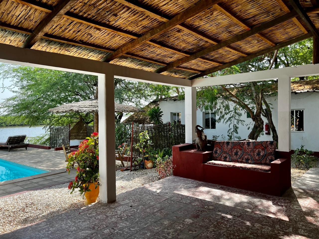 Pour vos moments de détente, le campement mets à disposition une piscine qui surplombe le bolong.
