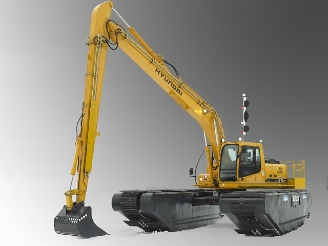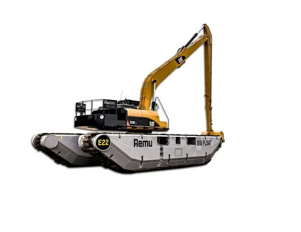 La pelle Big Float est idéale pour vos travaux maritimes et fluviaux. Elle permet d’aménager une berge, de draguer ou de faucarder des plantes invasives.